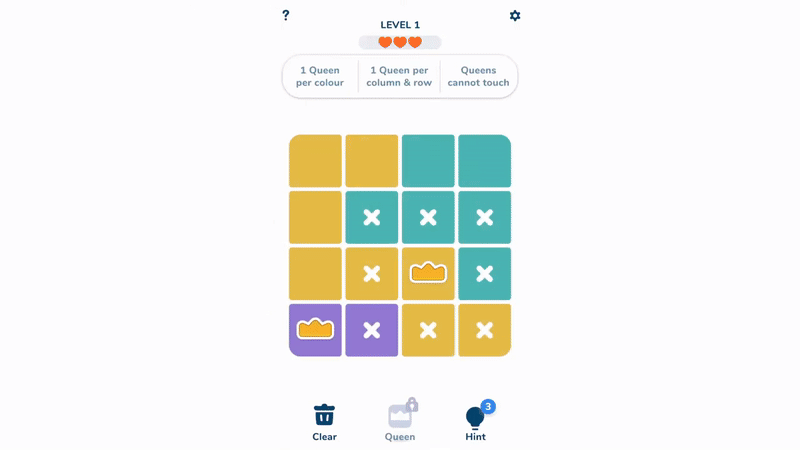The concept is elegant and classic, but with a modern twist: the board is set into different colored tiles, and your goal is to place one queen in each set. But here’s the challenge—queens don’t share rows, columns, or touch one another. To win in this puzzle, you’ll need logic and wit to think ahead and make every move count.